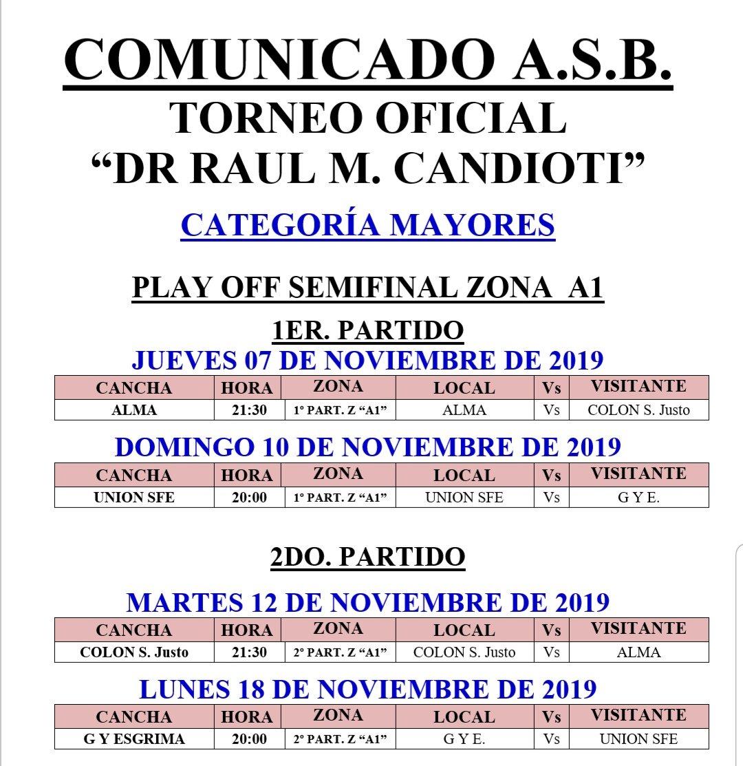 Mediante un comunicado la Asociación Santafesina de Básquet dio a conocer las fechas de los encuentros semifinales (Play Off) del Torneo Oficial A1 “Dr. Raúl M. Candioti”: