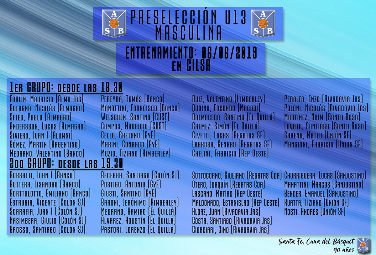 La preselección U13 de la Asociación Santafesina de Básquet realizó una practica en Cilsa este miércoles, bajo las ordenes del DT. Germán Arancio, la Asistencia Técnica de Freddo Milanesio y Lisandro Leone y la Preparación Física a cargo de Marcelo Farah.