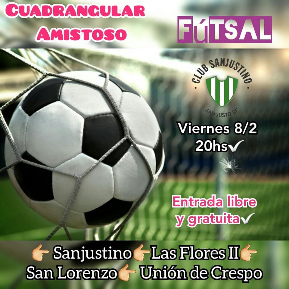 Este viernes 8 de febrero se realizará un cuadrangular amistoso de Futsal, a las 20 horas en el Club Sanjustino, con la participación de los siguientes equipos: