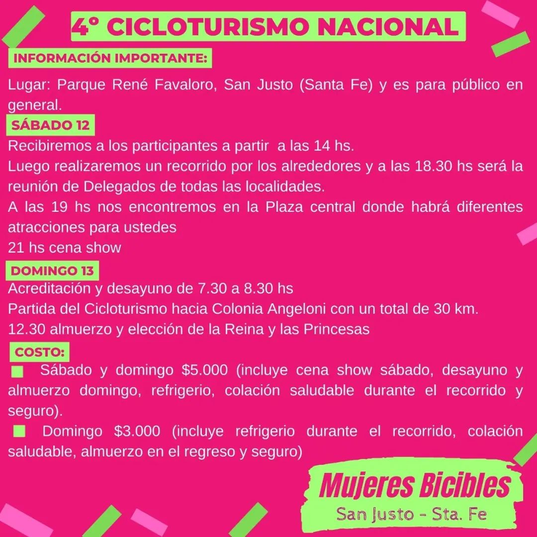7,30 a 8,30 horas: Acreditación y desayuno. Luego partida hacia Colonia Angeloni con un recorrido de 30 km.