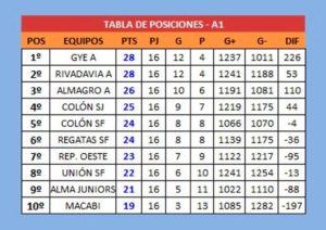 Este martes por la noche se disputó la 16º fecha de la Zona A1 del Torneo Oficial de Basquet en el estadio “Felix Colombo”. Fue derrota  de Colón SJ que recibió a Regatas Santa Fe por 74 a 73.