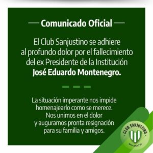 El Club Sanjustino adhiere al dolor causado por el fallecimiento de José Eduardo Montenegro