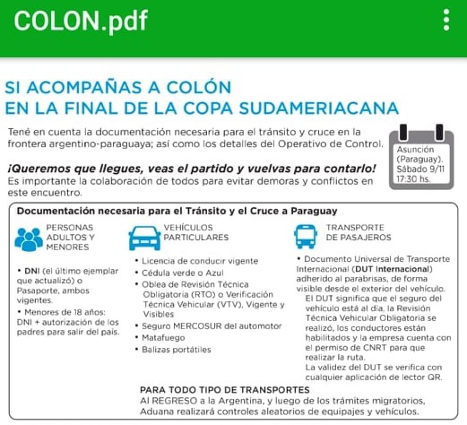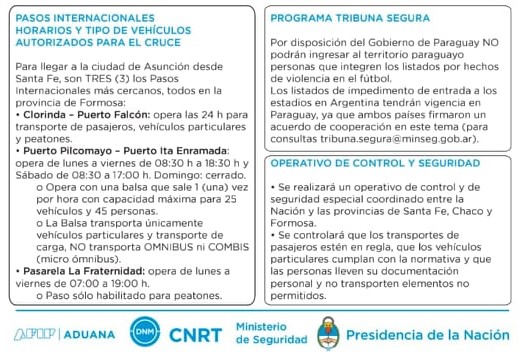 Las autoridades han dispuesto una serie de medidas tendientes a proteger a los hinchas del “Sabalero” que viajen a ver este partido. Las mismas pueden verse en galería de fotos, se recomienda leer con atención: