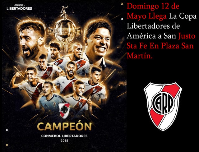 La réplica de la Copa Libertadores de América que en la última edición fuera ganada por el Club River Plate, llega este domingo 12 de mayo a plaza San Martín de nuestra ciudad.