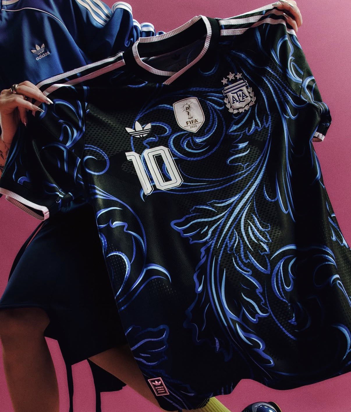 Además de las líneas tradicionales de Adidas, se sumaron las franjas en el cuello, las mangas junto con el logo de la AFA y los números de cada jugador. Los dígitos fueron colocados en el costado derecho del pecho para poner en el pecho el parche de campeón del 2022.