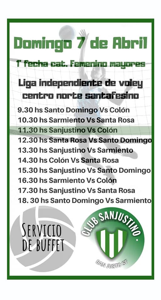 El domingo 7 de abril arranca el torneo de la liga independiente de voley del centro norte santafesino, categoría femenino mayores zona A, con la disputa de la primera fecha en el Club Sanjustino. Será a partir de las 9,30 horas.