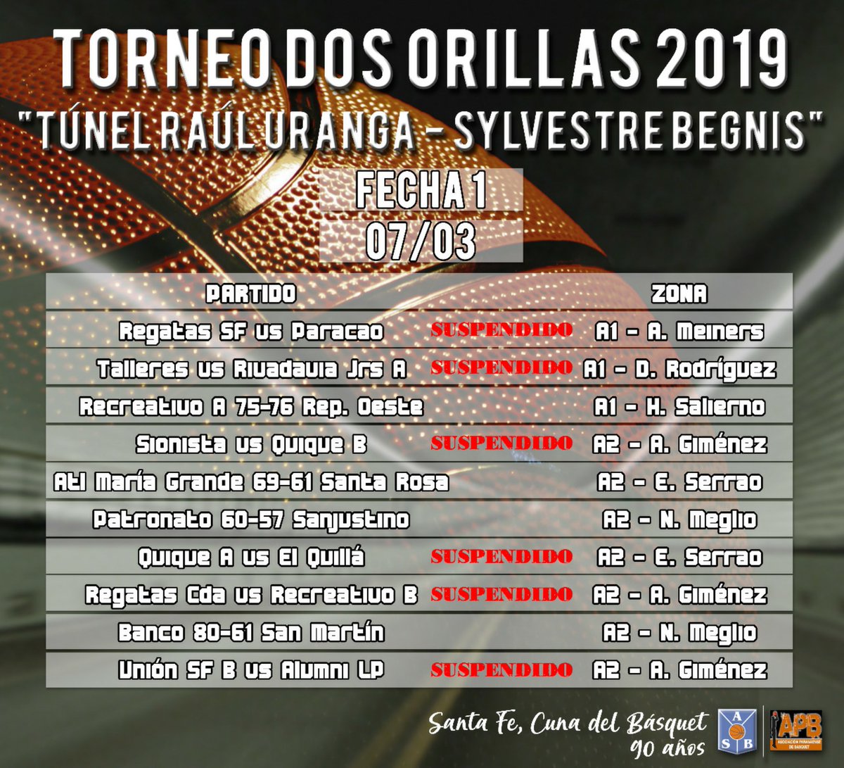 En el inicio del torneo Dos Orillas de Básquet 2019 “Túnel Raúl Uranga – Carlos Sylvestre Begnis”, Sanjustino cayó este jueves ante Patronato de Paraná por 60 – 57. La fuerte lluvia hizo que algunos encuentros deban ser suspendidos.