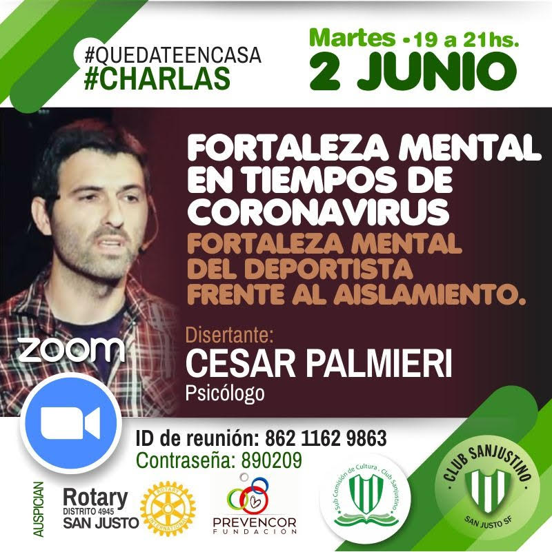 La subcomsion junto a otras Instituciones, preocupados por el aislamiento necesario y su repercución en los niños y jóvenes, organizo un reunión virtual por ZOOM, para las familias de nuestros deportistas y publico en general, sobre el tema “FORTALEZA MENTAL EN TIEMPOS DE CORONAVIRUS”, a cargo del Psicólogo – Deportólogo Cesar Palmieri (en portada), quien nos brindara herramientas necesarias para afrontar estos tiempos de cuarentena y sus repercusiones futuras.La misma sera este martes 2 de junio a las 19 hs.