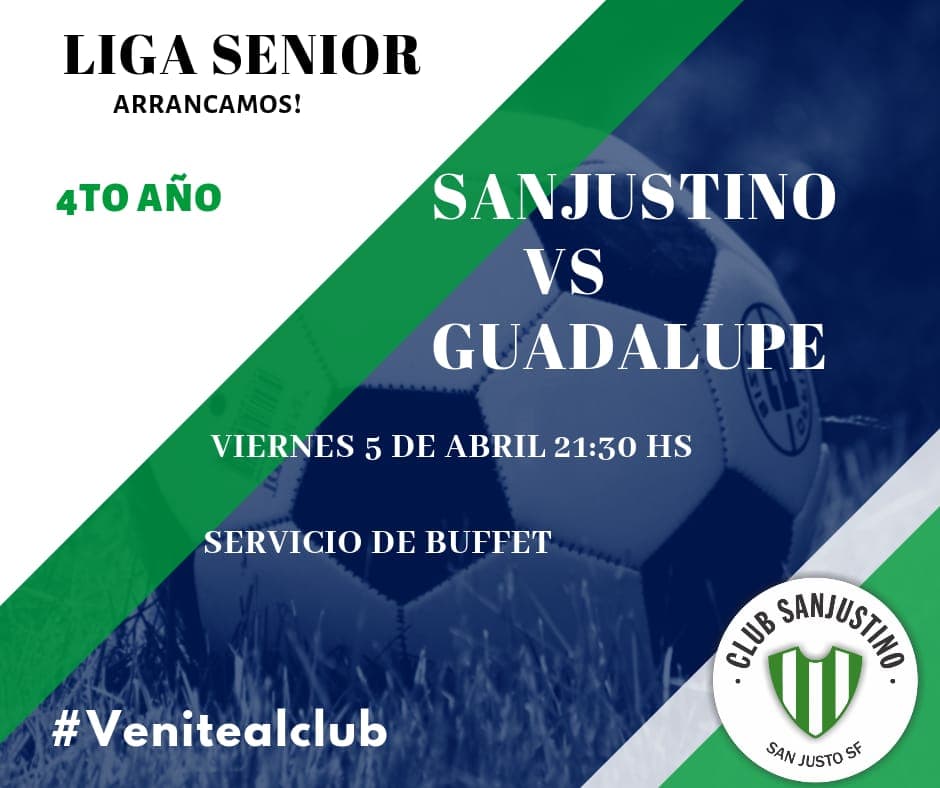 La categoría Senior de Sanjustino iniciará mañana viernes 5 de abril el torneo Apertura, recibiendo a Sportivo Guadalupe aquí en San Justo a partir de las 21,30 horas.
