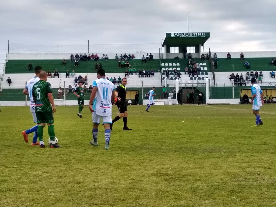 Sanjustino: Reginelli, Milesi ©, Díaz, Haupt, Rodríguez, Alesso, Aranda, González, Ruiz, Fassi, Ayala. DT Martín Casco.