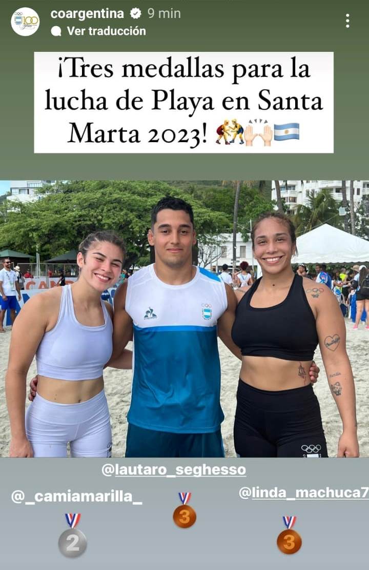 Se desarrollan los Juegos Suramericanos de Playa – Santa Marta 2023 (Colombia). Hoy domingo la lucha argentina conquistó tres medallas, que fueron para Lautaro Seghesso (Bronce) de nuestra ciudad, Linda Machuca (Bronce) de Misiones y Camila Amarilla (Plata) de José c. Paz.