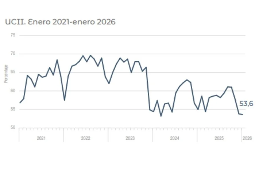 El indicador mide qué proporción de la capacidad productiva instalada en plantas y líneas de producción se usa. El dato del inicio de año marca una nueva caída mensual, por debajo del 53,8% de diciembre, y también interanual, ante el 55% que había registrado en enero de 2025.
