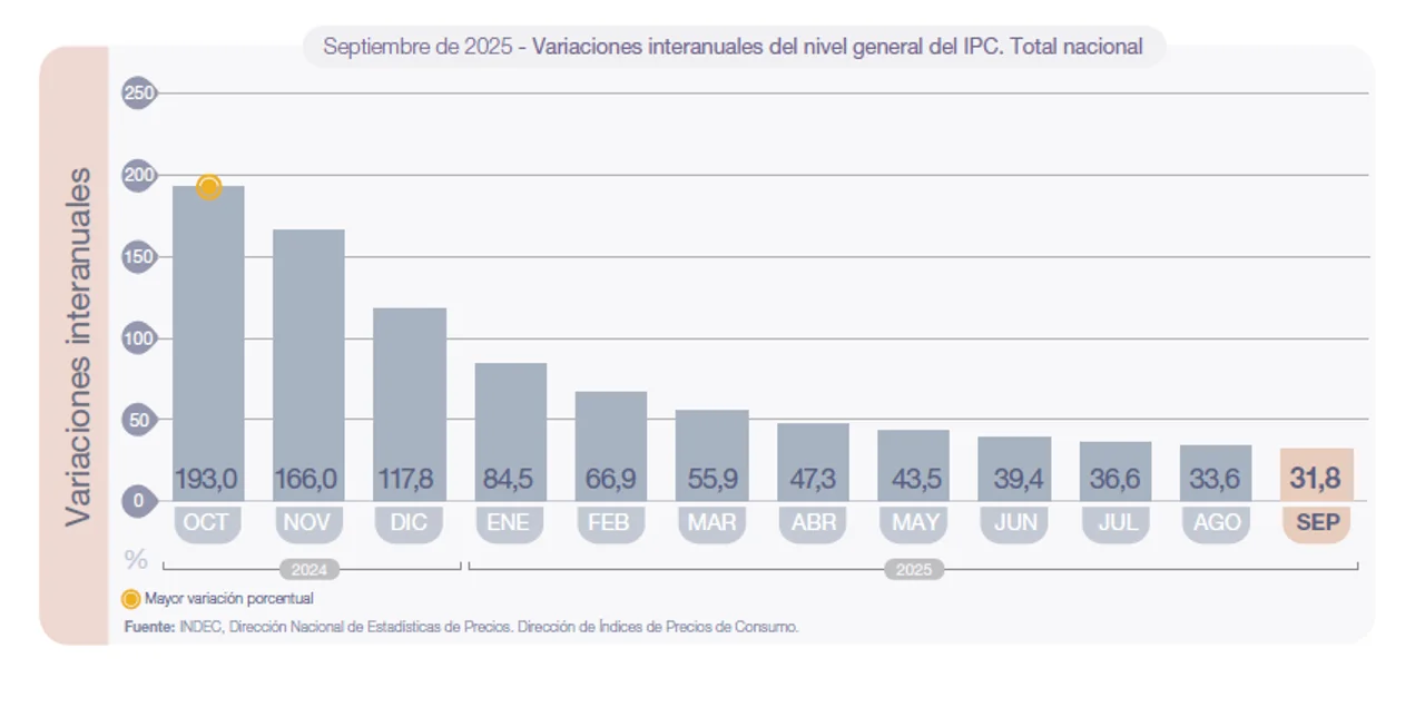 El Instituto Nacional de Estadística y Censos (INDEC) informó este martes que la inflación de septiembre de 2025 fue del 2,1%.