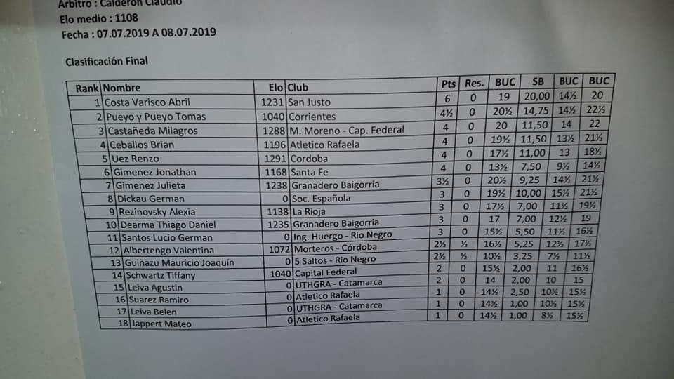 Esta competencia de jerarquía del Ajedrez Infantil, tuvo como protagonista a Abril Costa Varisco, una pequeña ajedrecista de San Justo que representa a la Biblioteca Popular Mariano Moreno, quien se quedó con el primer lugar en su categoría.