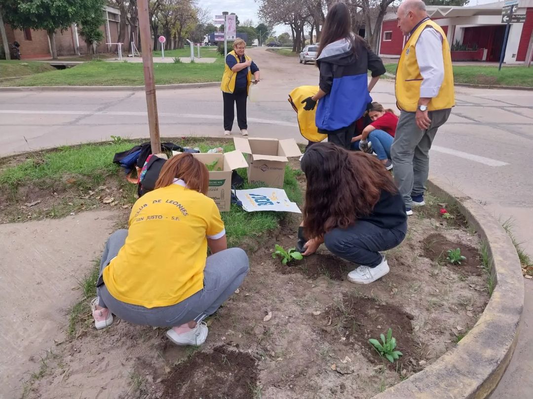 Leones y Leos realizaron reforestación de plantines florales en la unión de los Bulevares de nuestra ciudad