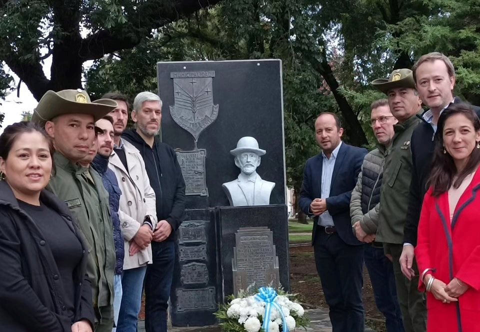Se realizó el clásico izamiento de la bandera en el mástil de plaza San Martín con la presencia de autoridades políticas y de las fuerzas de seguridad. Luego se colocó una ofrenda floral al pie del monumento del fundador Don Mariano Cabal.
