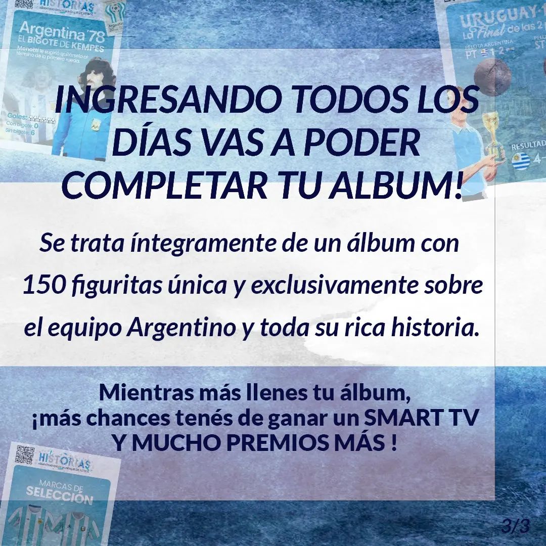 De primer premio se va a sortear un Smart Tv con todos los que llenen el álbum al 100%. Luego, con el paso de los días, se agregarán a importantes premios.