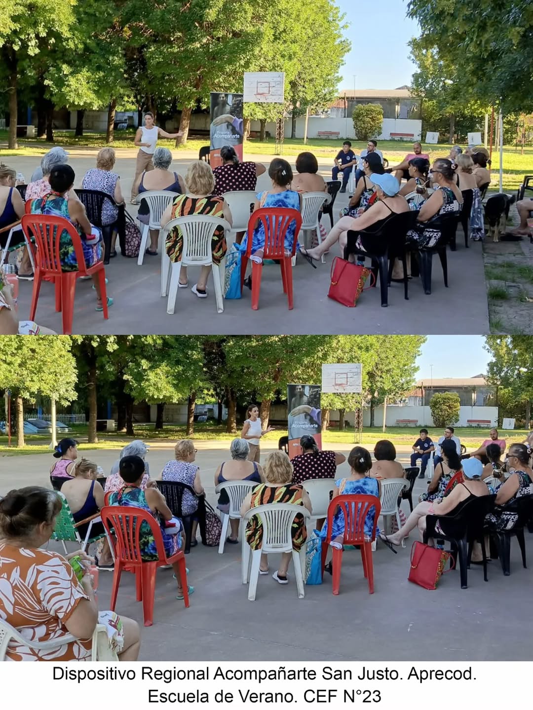 La actividad se llevó a cabo en el marco de la Escuela de Verano del Ministerio de Educación, en articulación con APRECOD – Dispositivo Regional Acompañarte San Justo, generando un espacio de información, intercambio y concientización.