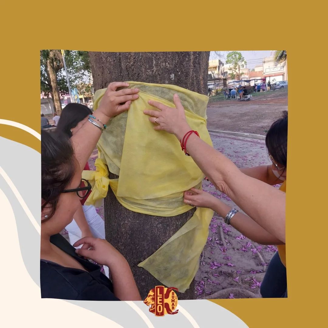 El domingo por la tarde decoramos con lienzo diferentes árboles de nuestra plaza principal. Además junto a los Leos, Preleos y Leones repartimos lazos y folletos diseñado por nosotros a las personas que se encontraban disfrutando el domingo en la plaza.