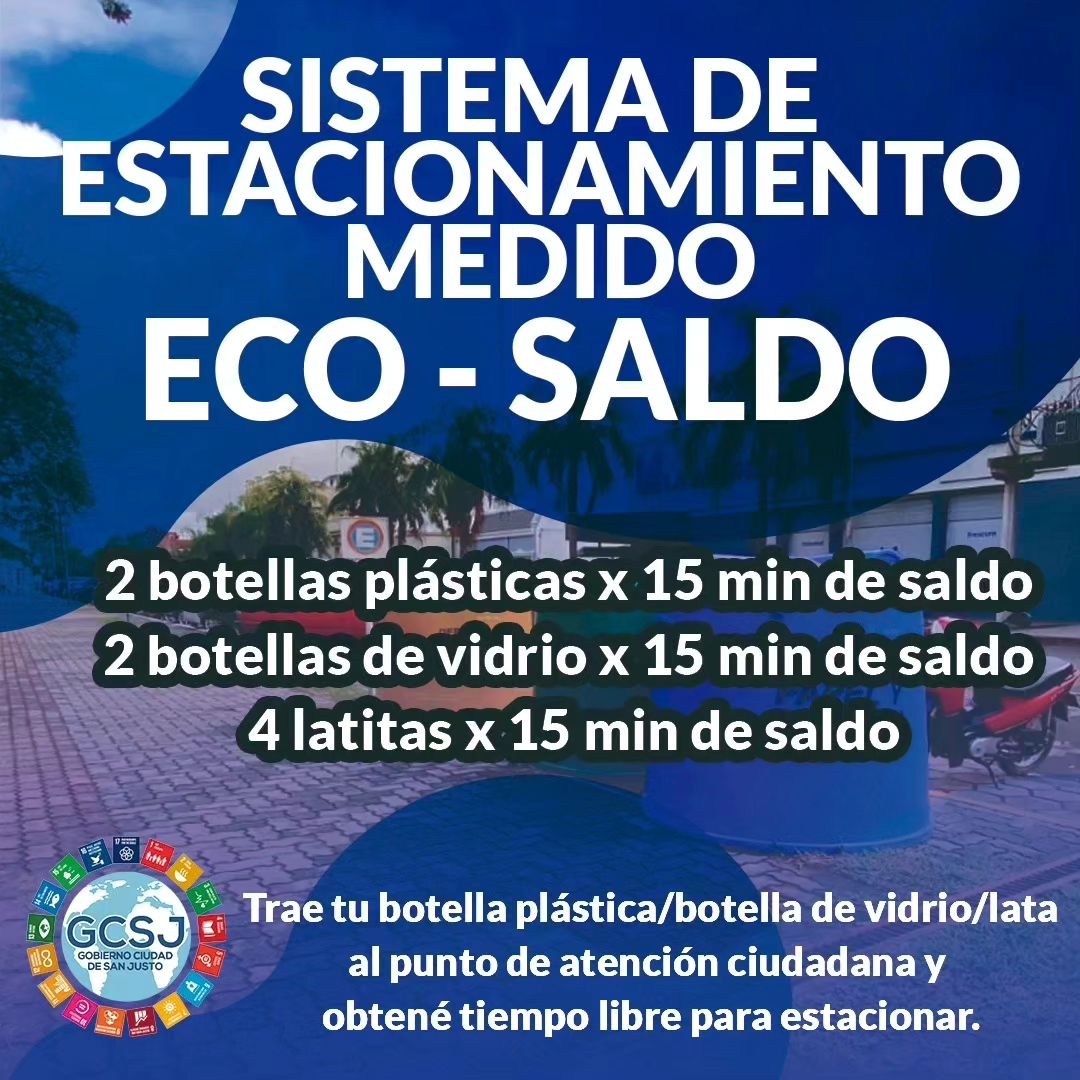 DOS BOTELLAS (PLÁSTICAS O VIDRIO) equivalen a 15 minutos de estacionamiento.