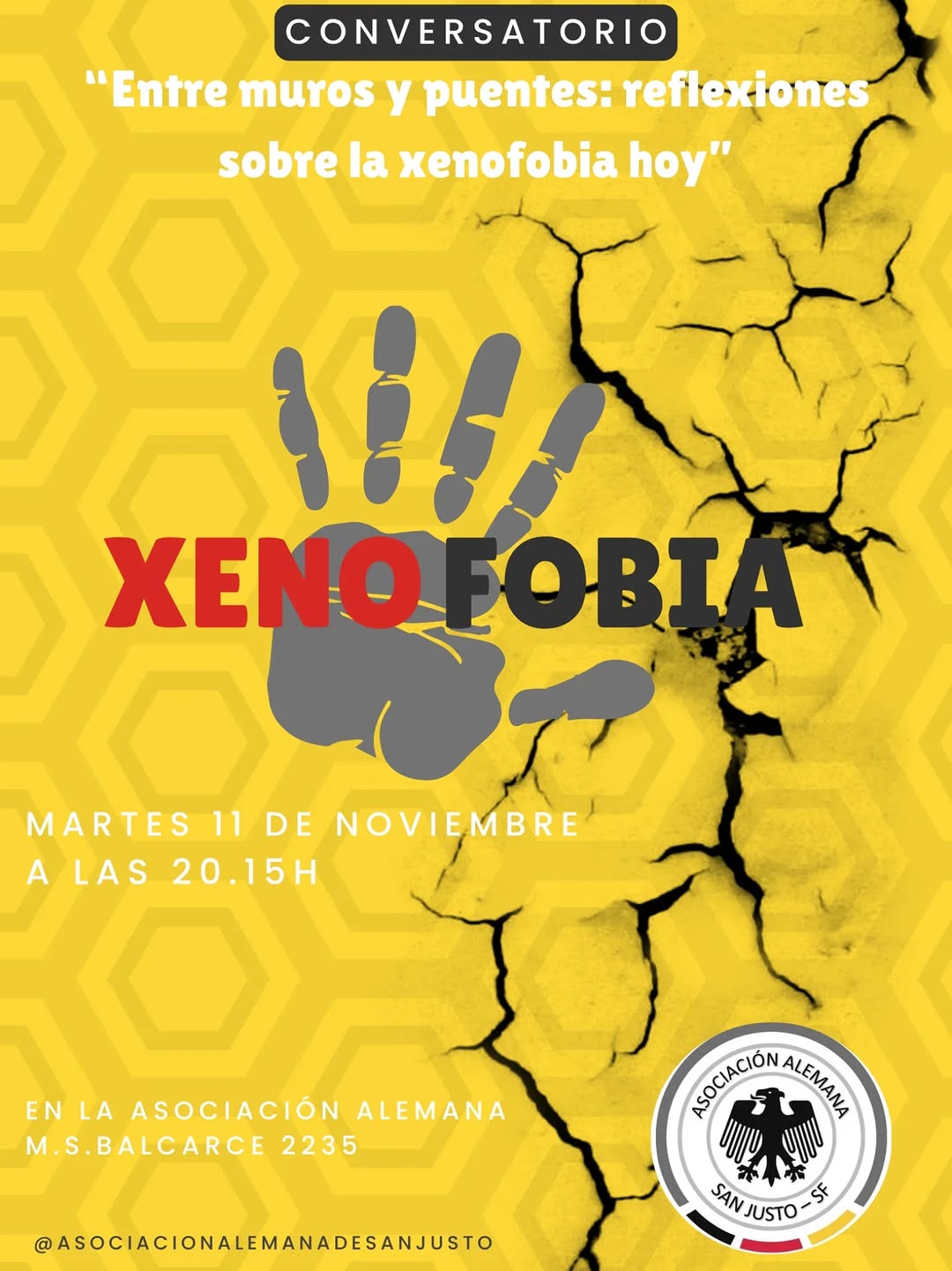 La Asociación Alemana de San Justo te invita al conversatorio: “Entre muros y puentes: reflexiones sobre la xenofobia hoy”. Este martes 11 de noviembre a las 20.15 horas, en la sede de la asociación (Balcarce2235)