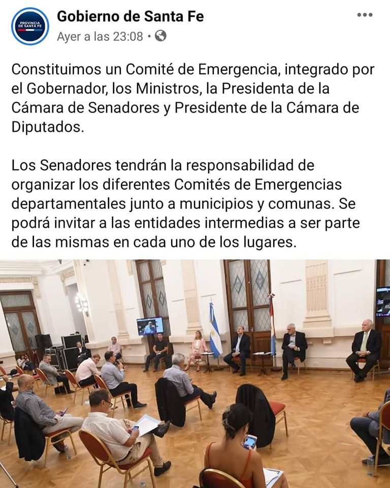 Cumpliendo con la tarea que nos encomendara días atrás el Gobernador Omar Perotti en la reunión mantenida en la Casa Gris con los demás legisladores, mañana vamos a reunir el Comité de Emergencia del Departamento San Justo.