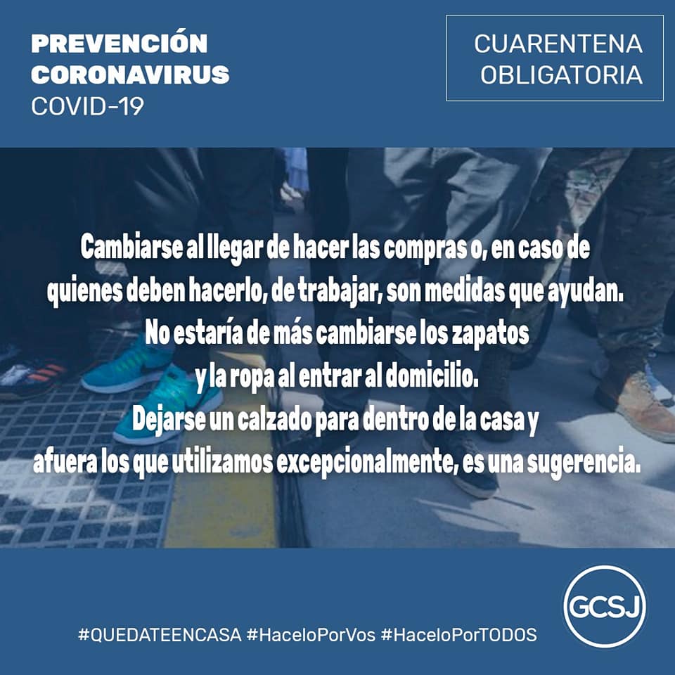 ➡️Cambiarse al llegar de hacer las compras o de trabajar, son medidas que ayudan. No estaría de más cambiarse los zapatos y la ropa al entrar al domicilio. Dejarse un calzado para dentro de la casa y afuera los que utilizamos excepcionalmente, es una sugerencia.