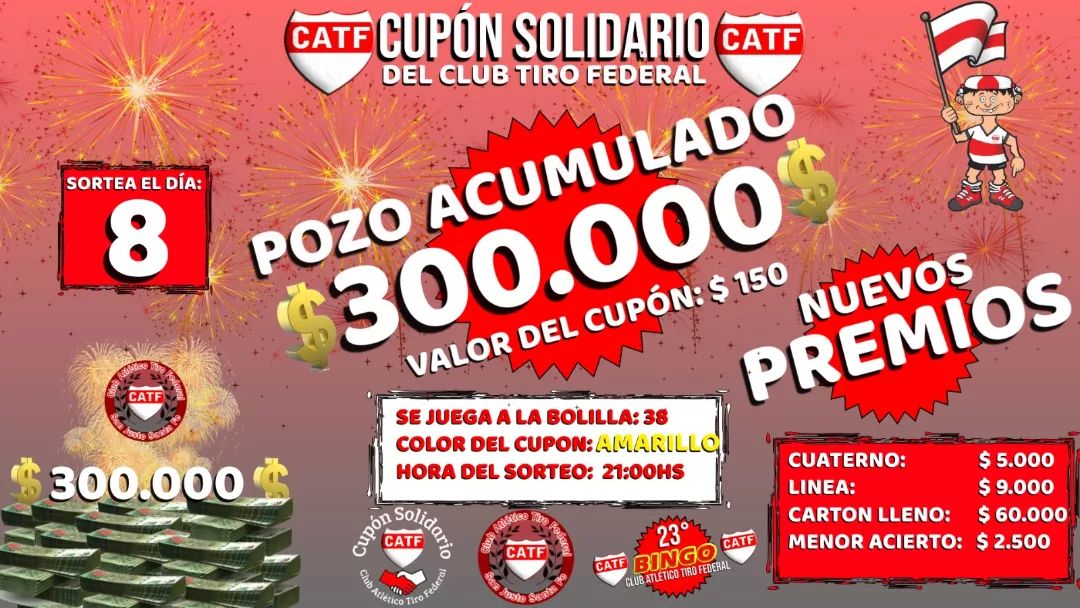 Este miércoles se llevó a cabo un nuevo sorteo del cupón solidario del Club Tiro Federal y hubo un ganador del pozo acumulado.