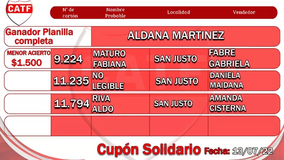 Se realizó el sorteo del cupón solidario del Club Atlético Tiro Federal, a continuación damos la nómina de ganadores:
