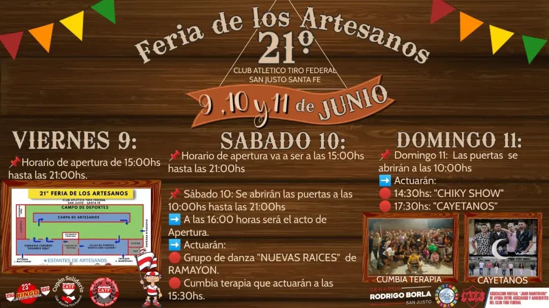 Ya llega la 21º Feria de los Artesanos al Club Atlético Tiro Federal, este 9, 10 y 11 de Junio te esperamos.