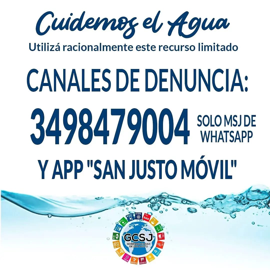Si ves un uso irracional de Agua, podes denunciar por el canal exclusivo de reclamos al: 3498479004 (sólo Whatsapp)