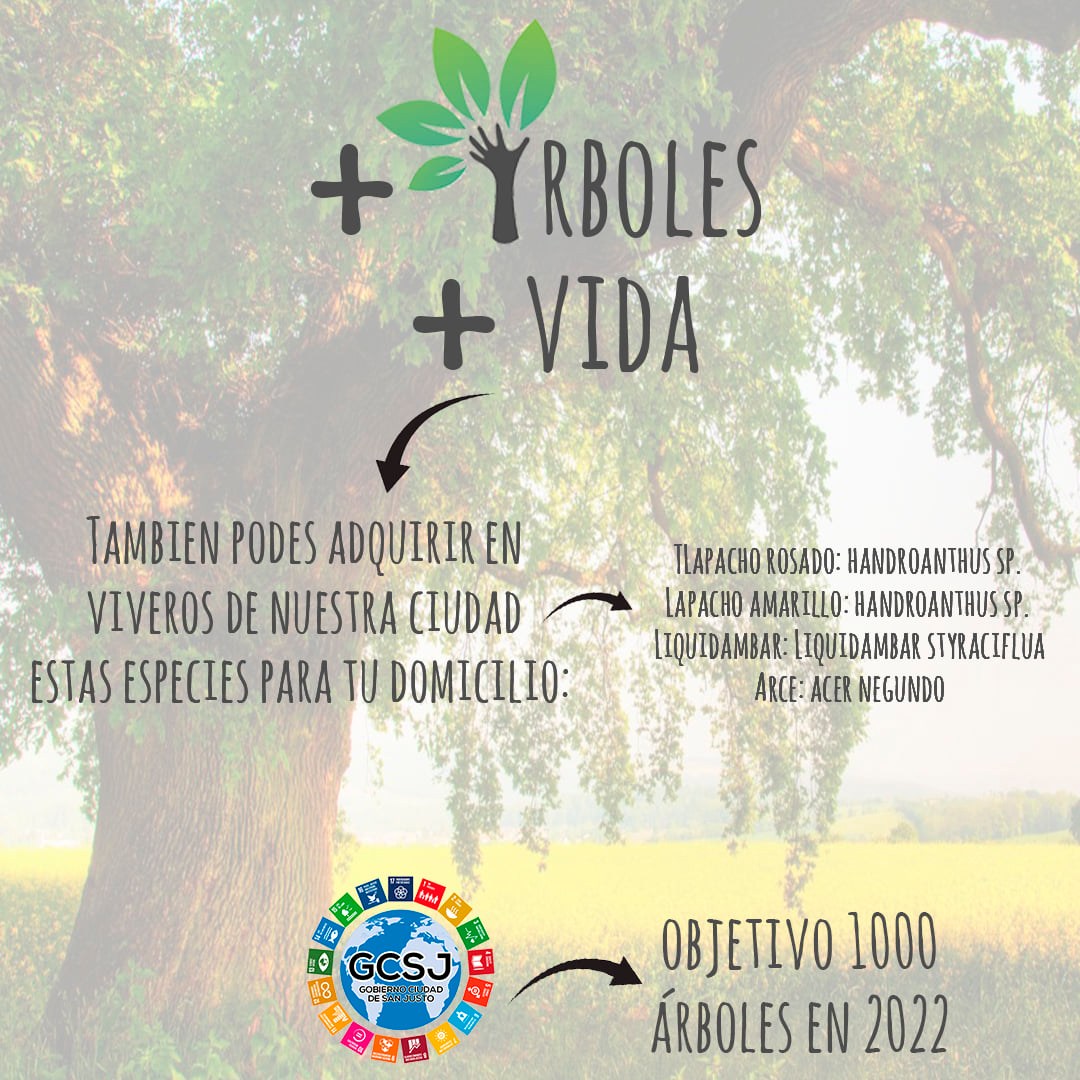 También podes optar por comprar los ejemplares recomendados en los diferentes viveros de San Justo. AVISANOS así llegamos juntos a los 1000 árboles plantados. Además, con diferentes instituciones realizaremos plantación en espacios públicos y cortinas forestales.
