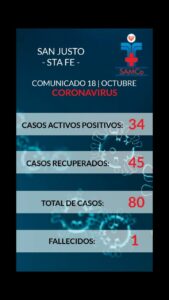 El SAMCo San Justo informa a la comunidad los datos actuales de coronavirus al dia de hoy.