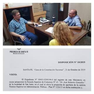 A través de #gestiones que realizó, el Senador Rodrigo Borla, junto a miembros de la escuela y del área de Educación Superior del Ministerio, se logró la 👩🏻🏫 🎓 apertura de la carrera de Técnico Superior en Administración Pública.