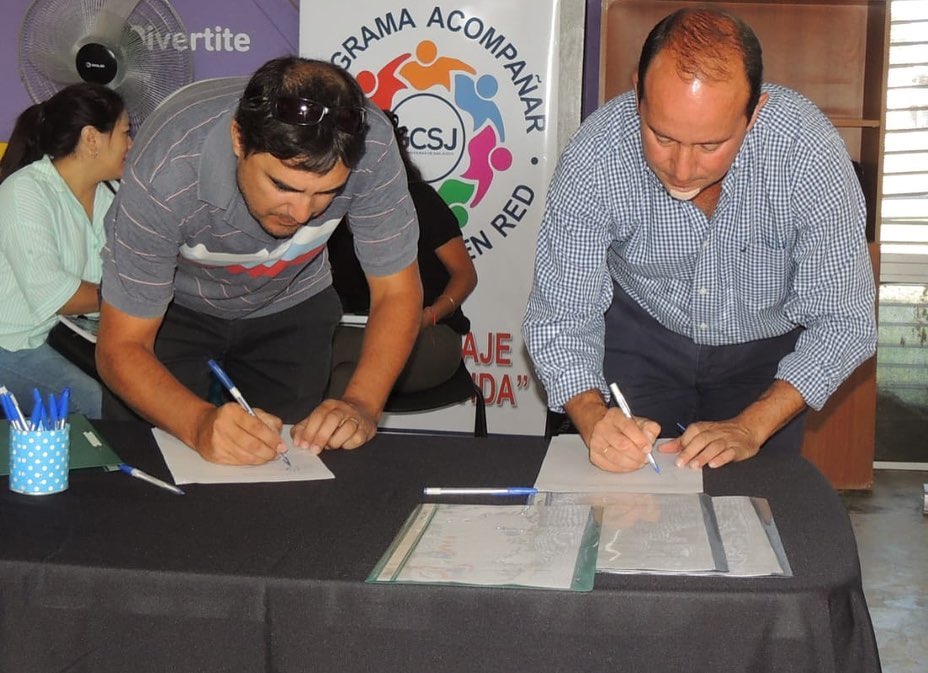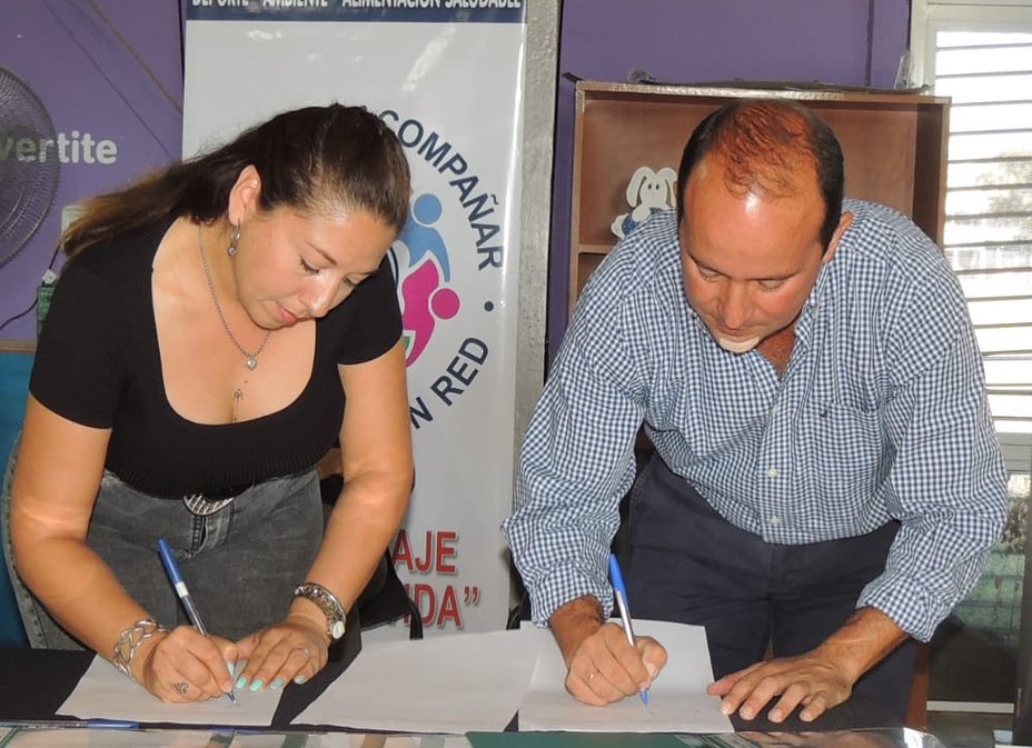 Nicolás Cuesta y los referentes de cada punto Acompañar de los diferentes barrios realizaron la firma de convenio para iniciar con las actividades del programa municipal que persigue el desarrollo y acompañamiento socioeducativo, deportivo, alimenticio y humano con inclusión; y está destinado a mejorar las trayectorias de vida desde la primera infancia.