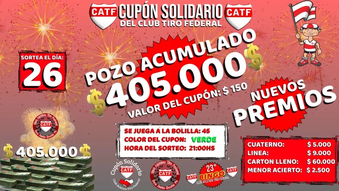 Este miércoles se realizó un nuevo sorteo del Cupón Solidario del Club Tiro federal, a continuación damos a conocer los ganadores: