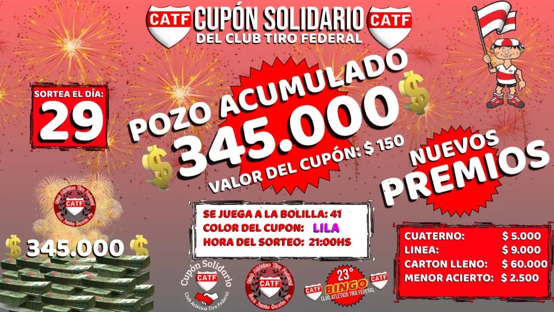 Hoy por la noche se llevo a cabo una nueva edición del sorteo del cupón solidario de Tiro Federal, a continuación damos a conocer la nómina de ganadores: