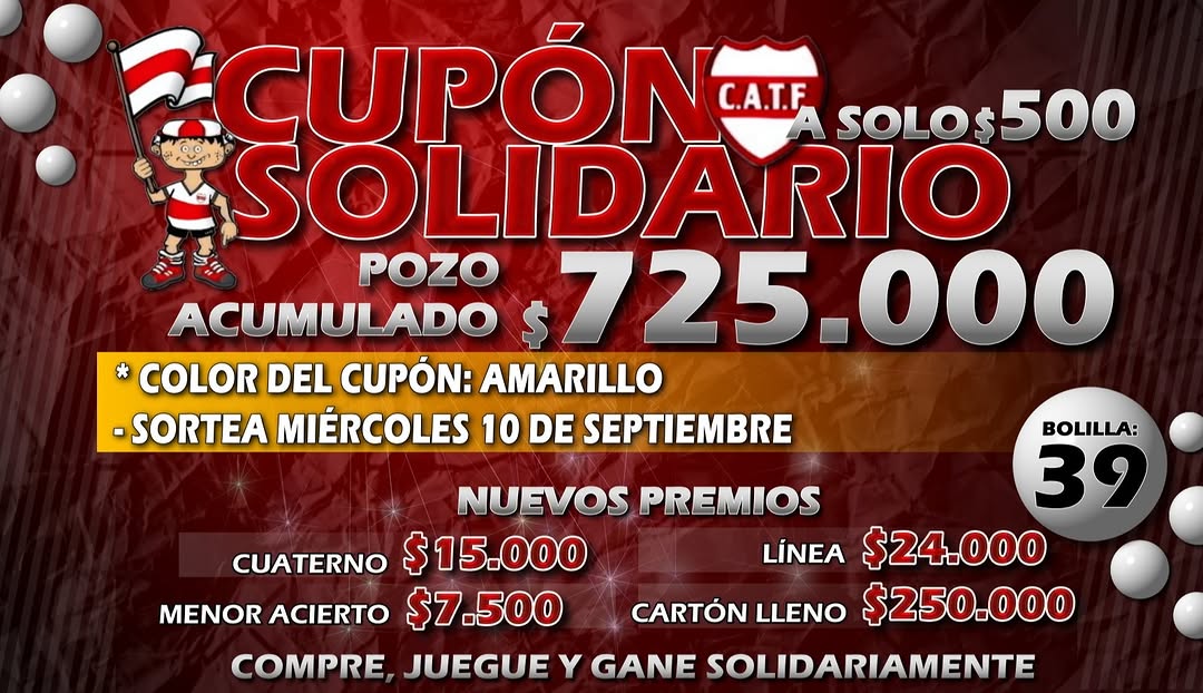 El pozo quedó vacante – próximo sorteo 10/09 – pozo acumulado $ 725.000 – valor del cartón $ 500 – a la bolilla 39 – color del cartón, amarillo.