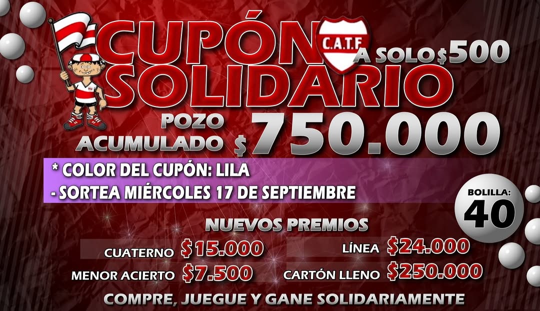 El pozo quedó vacante – próximo sorteo 17/09 – pozo acumulado $ 750.000 – valor del cartón $ 500 – a la bolilla 40 – color del cartón, lila.