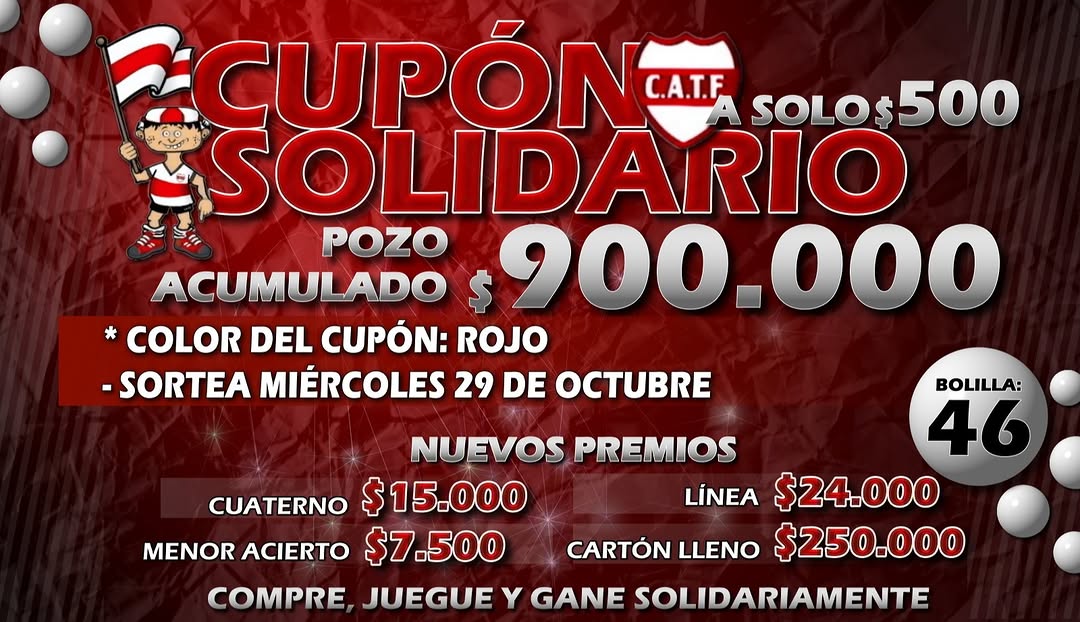 El pozo quedó vacante – próximo sorteo 29/10 – pozo acumulado $ 900.000 – valor del cartón $ 500 – a la bolilla 46 – color del cartón, rojo.