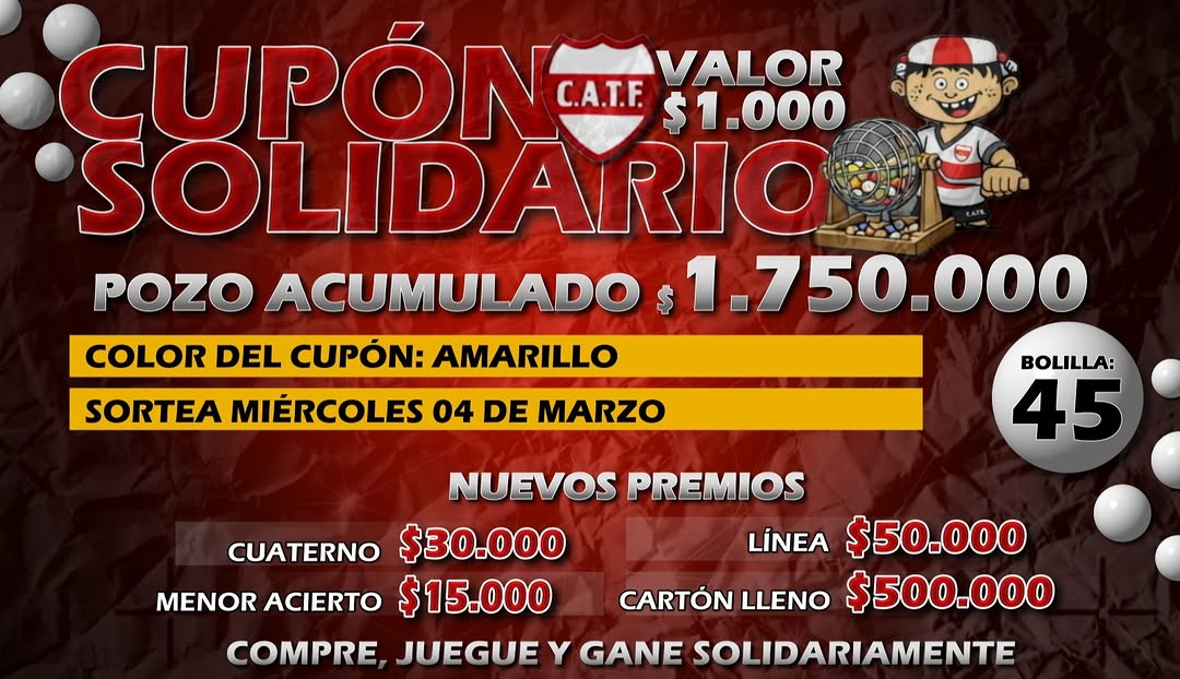 El pozo quedó vacante, próximo sorteo el día 04/03, Pozo Acumulado $1.750.000, a la bolilla 45, color del cartón amarillo, a tan sólo $1.000.