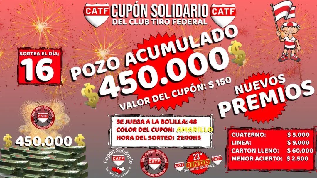 Se realizó este miércoles, un nuevo sorteo del cupón solidario del Club Atlético Tiro Federal, a continuación damos a conocer la nómina de ganadores:
