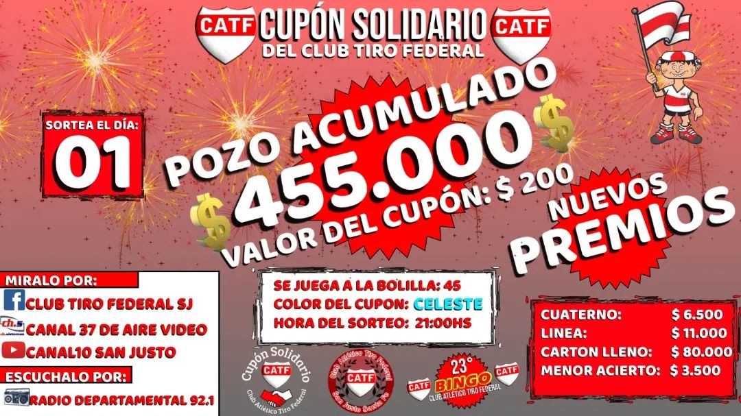 Se realizó este miércoles, un nuevo sorteo del cupón solidario del Club Atlético Tiro Federal, a continuación damos a conocer la nómina de ganadores: