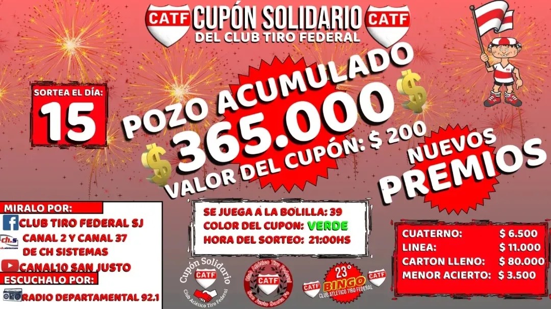 Se realizó este miércoles, un nuevo sorteo del cupón solidario del Club Atlético Tiro Federal, a continuación damos a conocer la nómina de ganadores: