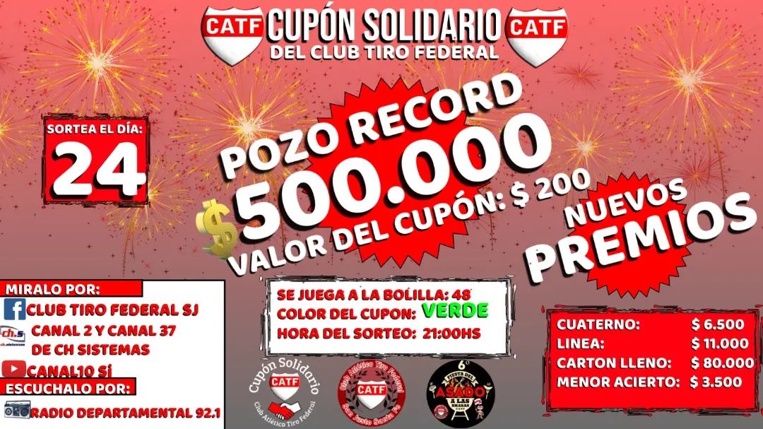 Se realizó este miércoles, un nuevo sorteo del cupón solidario del Club Atlético Tiro Federal, a continuación damos a conocer la nómina de  ganadores:
