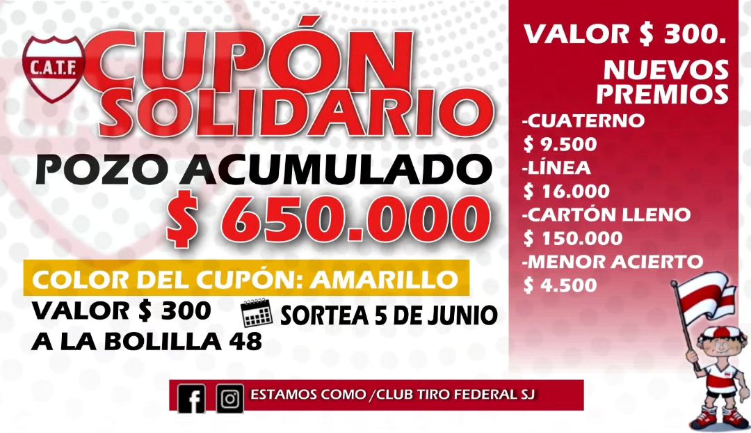 Se realizó este miércoles, un nuevo sorteo del cupón solidario del Club Atlético Tiro Federal, a continuación damos a conocer la nómina de  ganadores: