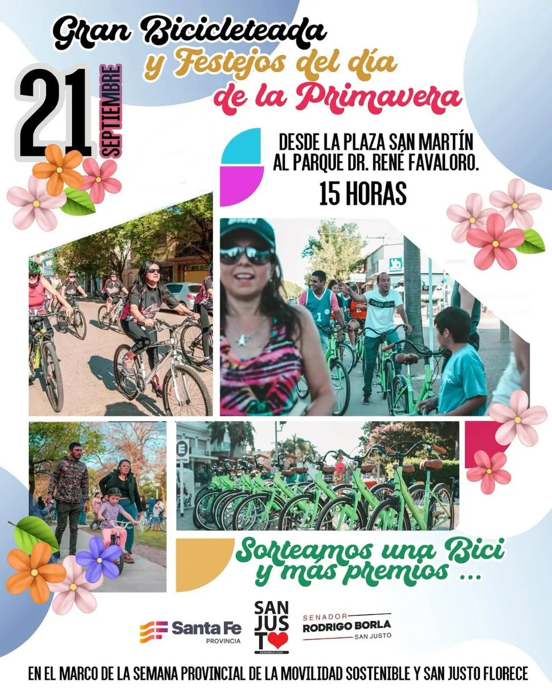 Y atención: en el cierre, sortearemos una bicicleta y muchos premios más. San Justo crece y florece con vos. Te esperamos para pedalear juntos hacia la ciudad que queremos.