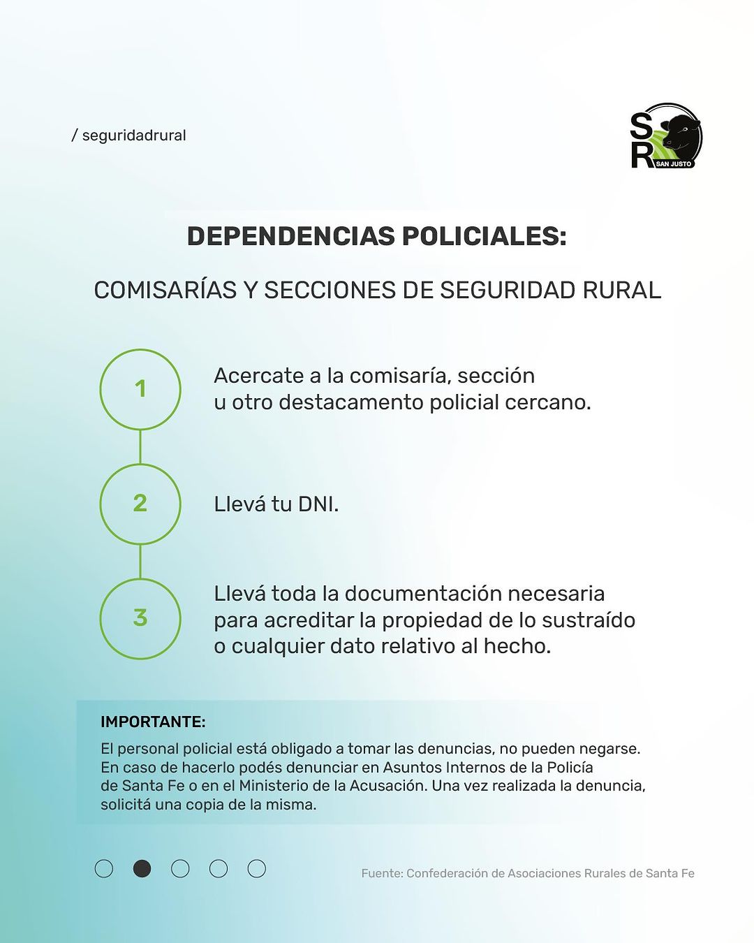 Importante ⚠️ A fin de simplificar tiempos de investigaciones y para poder generar el Mapa del Delito Rural, nos sumamos a la recomendación de @infocarsfe: al realizar una denuncia acompañá tu número de RENSPA (para acreditarte como productor) y un impuesto inmobiliario API (para ubicar el establecimiento de tu explotación).
