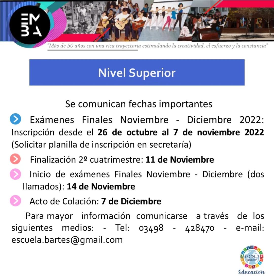 Importante información del nivel superior de la Escuela Municipal de Bellas Artes
