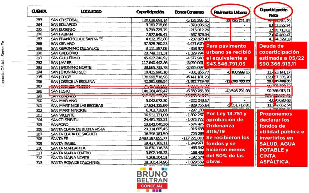 Cabe recordar que esta deuda se generó entre los años 2003 a 2015, por la detracción ilegal del 15% de los fondos coparticipables que debía recibir el municipio, situación que limitó la capacidad de inversión de anteriores gestiones municipales.